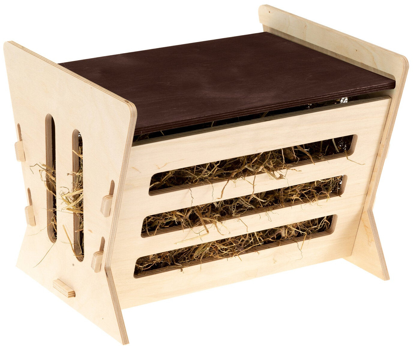 Ferplast Кормушка для сена «Hay Feeder 1»В данный момент этот товар отсутствует в продаже. Возможно, у нас найдется аналогичный или похожий товар здесь. Доступна со всех сторон для вашей морской свинки или кролика. Верх можно закрыть сдвижной пластиной. Поскольку сено не лежит на земле, оно дольше остается свежим. Стойка для сена изготовлена из дерева и легко собирается. |