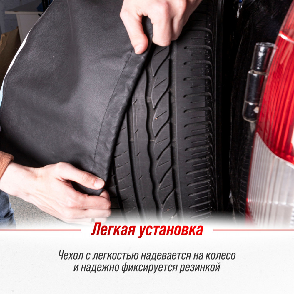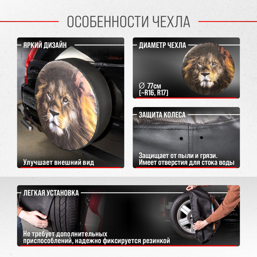 Чехол на запасное колесо автомобиля из прочного и легко моющегося материала. Экокожа и полиэстер сохраняют свою форму, устойчивы к воздействиям окружающей среды. Чехол защищает запасное колесо от проникновения пыли, возможных загрязнений, солнечных лучей и агрессивных веществ. Яркий дизайн изделия привлекает внимание. Аксессуар улучшает внешний вид автомобиля, делает его более интересным и лаконичным. Подходит для городских и полевых условий. Чехол с легкостью надевается на колесо, не требуя дополнительных приспособлений.