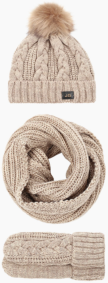 Цвет чудесный, форма хорошая, шапочка сидит хорошо, варежки уютные, все по размеру. Снуд мог бы быть чуток побольше, может он растянется со временем, но пока очень плотно сидит. Все вместе - красиво, тепло и аккуратно сделано.