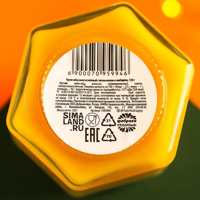 Фабрика счастья Крем-мёд двухслойный с апельсином и имбирем «Аромат нового года»В данный момент этот товар отсутствует в продаже. Возможно, у нас найдется аналогичный или похожий товар здесь. Серия: Аромат праздника Крем-мед получают из любого сорта меда. Данный продукт был придуман с целью предотвращения кристаллизации и получения десерта с воздушной консистенцией. Процесс изготовления крем-мёда основывается на механическом вымешивании до начала процесса кристаллизации, в результате чего снижается уровень вязкости продукта. При взбивании в лакомство попадет кислород, что приводит к увеличению объема и придания воздушной текстуры. |