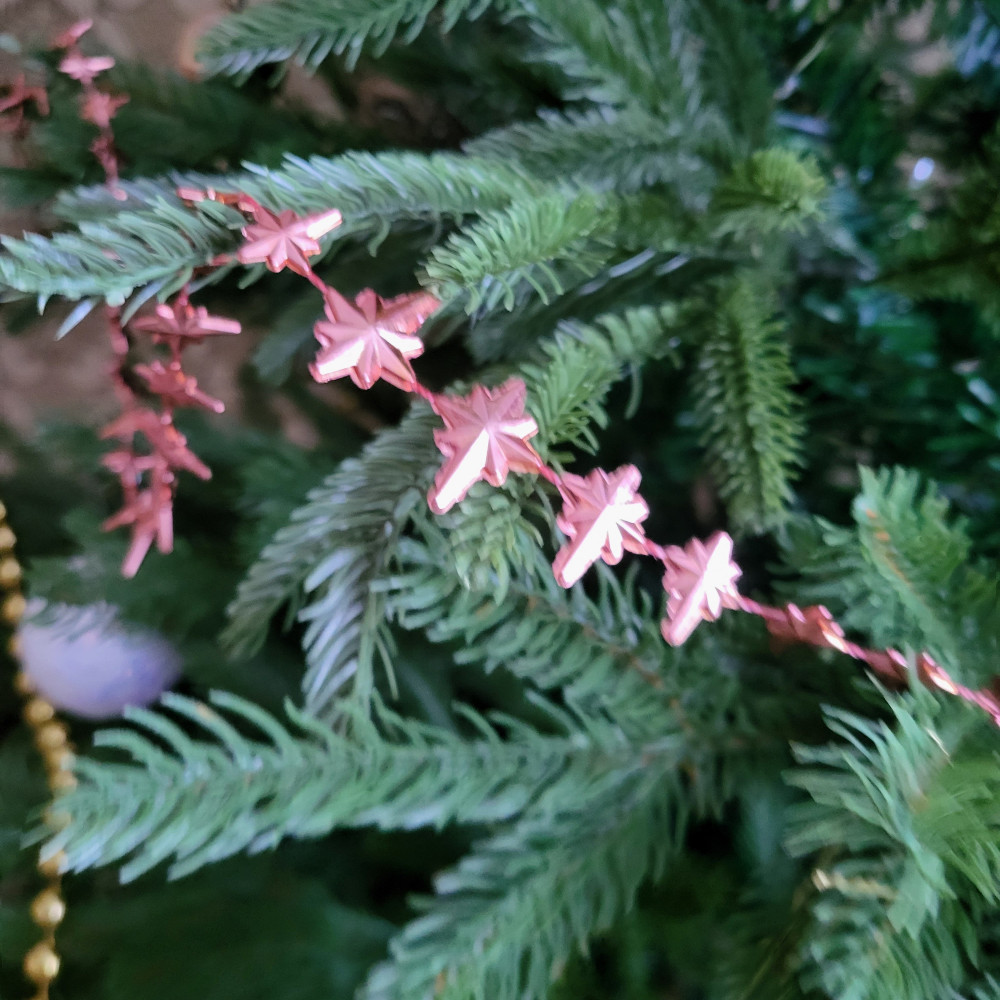 Бусы смотрятся красиво на ёлке. На фото цвет не такой, на самом деле как красное золото цвет.