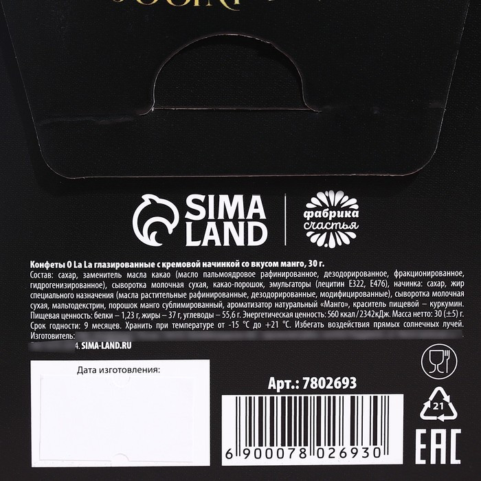 Фабрика счастья Конфеты шоколадные «Верь в чудеса»В данный момент этот товар отсутствует в продаже. Возможно, у нас найдется аналогичный или похожий товар здесь. Серия: Аромат праздника Вам знакомо то чувство, когда невыносимо хочется чего-нибудь вкусного? В этом нет ничего страшного, баловать себя полезно, ведь сладкое повышает уровень эндорфинов — гормонов счастья. Подарочные конфеты принесут заряд хорошего настроения и станет отличным презентом для друзей. Дома, в школе, на прогулке — наслаждайтесь сами и радуйте друзей и близких! Каждая конфета — праздник вкуса и удовольствия! |