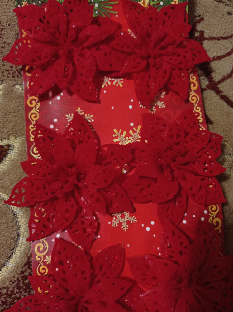 от фото отличается. Ожидала, что цветы будут с бархатистым покрытием. По факту просто красный пластик. Не могу советовать