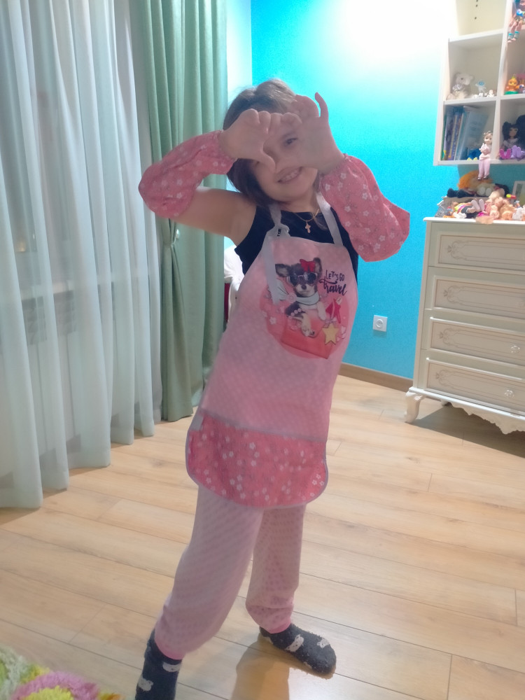 фартук: 55 × 43 см, нарукавники: 26 × 12 см