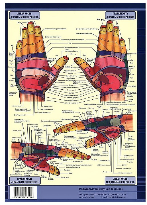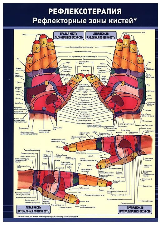 Плакат «Рефлексотерапия. Рефлекторные зоны кистей». Полноцветный, двустронний