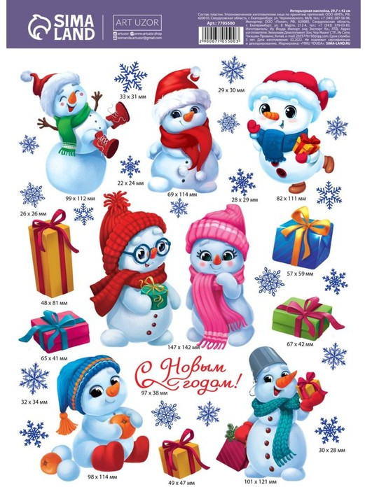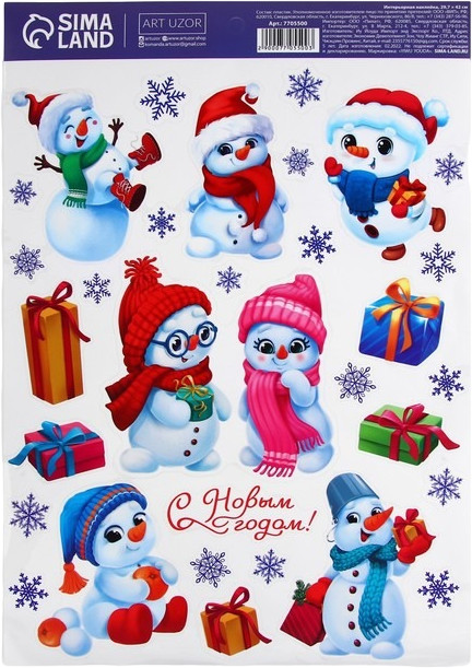 Арт Узор Набор наклеек интерьерных «Снеговички»-40% +6