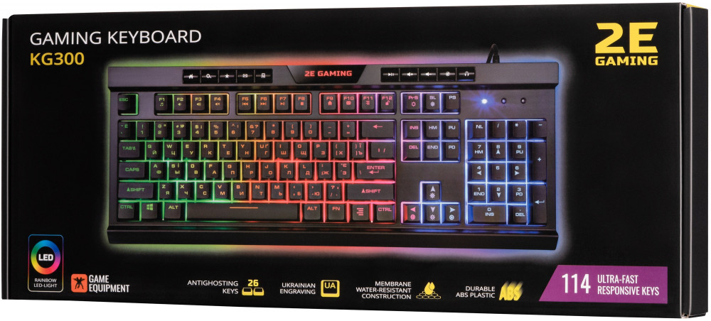 2Е Клавиатура Gaming KG300В данный момент этот товар отсутствует в продаже. Возможно, у нас найдется аналогичный или похожий товар здесь. Мембранная полноразмерная игровая клавиатура 2E Gaming KG300 выполнена в ярком игровом дизайне и готова к бескомпромиссной борьбе. Корпус из качественных материалов, колпачки с подсветкой из прочного ABS-пластика, 104 ультрабыстрых и отзывчивых кнопки обеспечат пользователю неоспоримое преимущество в играх и повседневных задачах. Для дополнительного удобства предусмотрены 10 мультимедийных кнопок. |