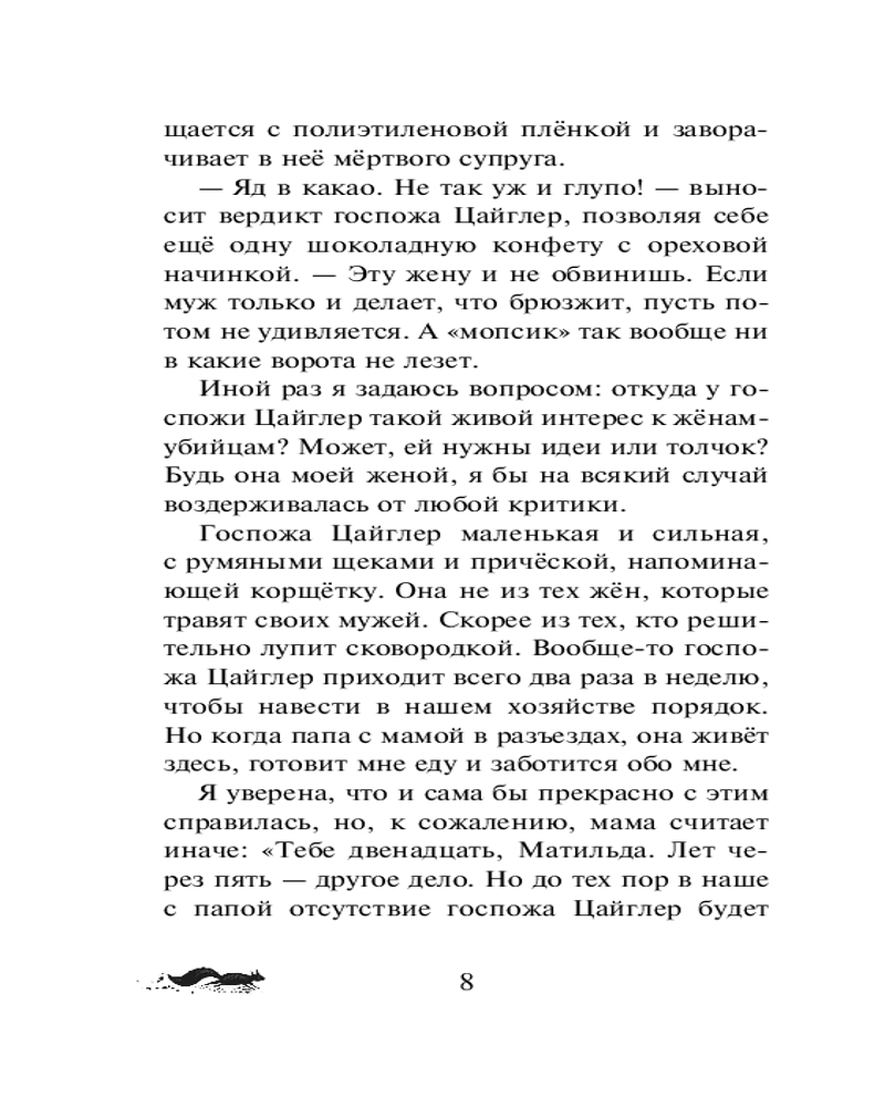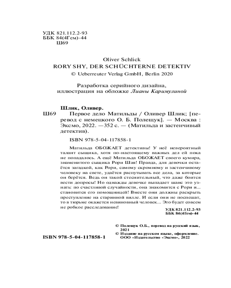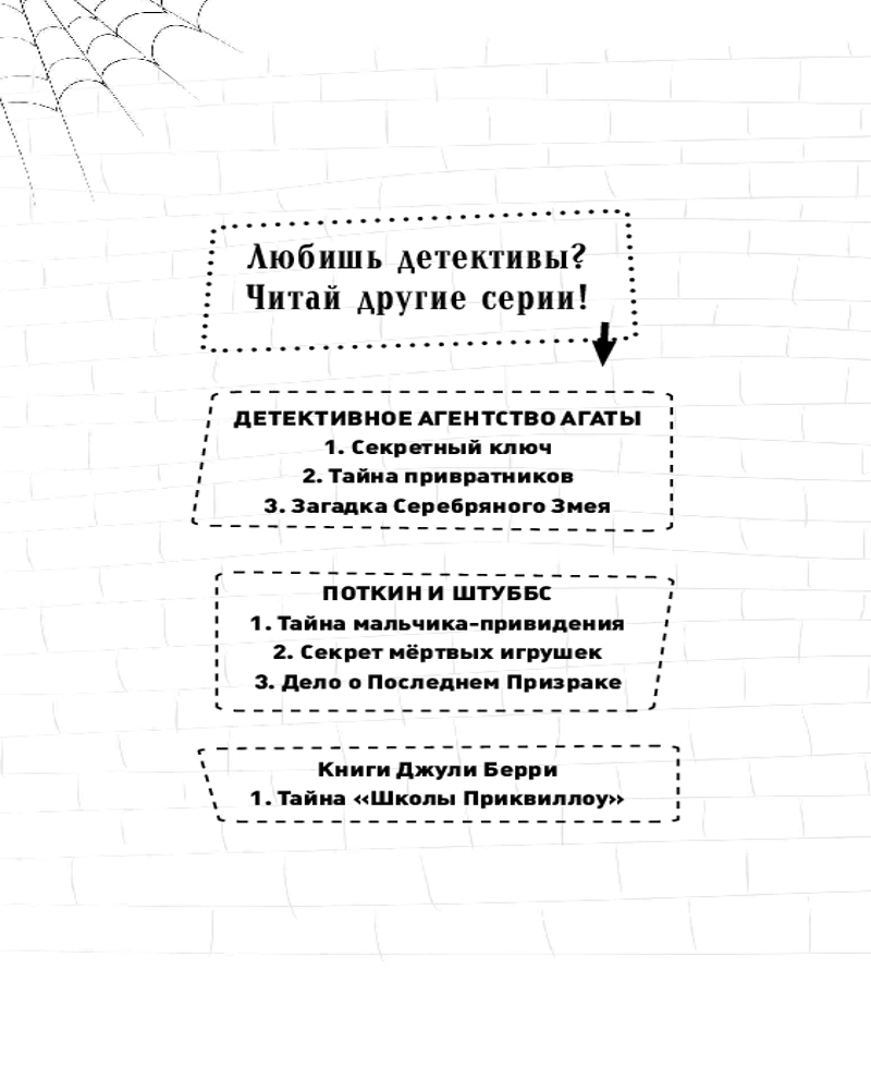 Первое дело МатильдыВ данный момент этот товар отсутствует в продаже. Возможно, у нас найдется аналогичный или похожий товар здесь. Серия: Детск. Матильда и застенчивый детектив Матильда всегда знала: в ней живёт талант суперсыщика! Не зря она так долго ждала по-настоящему стоящего дела! Наконец-то ей повезло: совершенно случайно она встретила своего кумира Рори Шая — самого гениального и в то же время самого робкого детектива на свете! Матильда ни за что не упустит свой шанс. Она твёрдо решила стать помощницей детектива и вместе с ним расследовать кражу жемчужины, которая стоит... миллионы! К счастью, Рори настолько застенчив, что не сможет её прогнать. Берегитесь, воры, Матильда берётся за дело! |