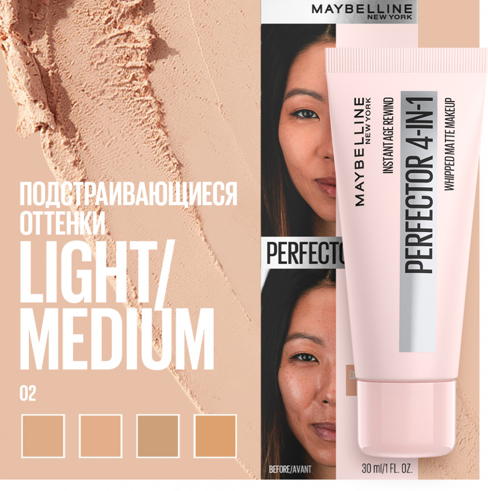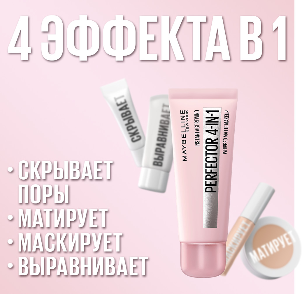 Maybelline New York Мультифункциональный тональный мусс с матовым эффектом 4-в-1 «Instant Perfector Matte», оттенок 02