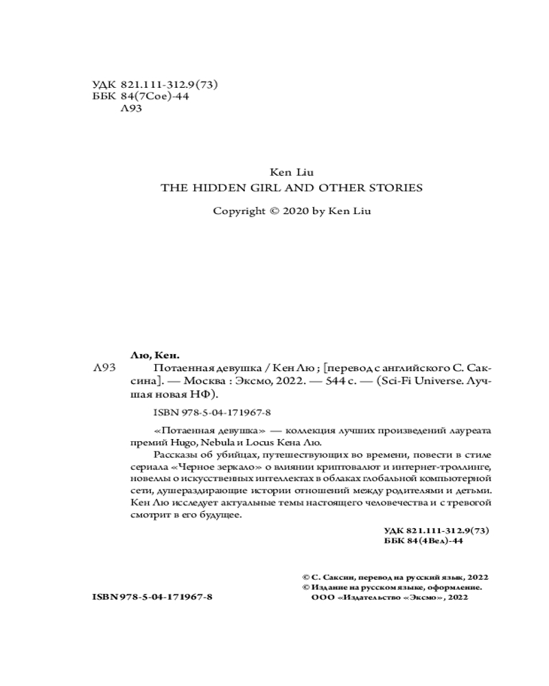 💳 Оплатить за товар можно при получении 🇰🇿 Есть бесплатная доставка по Казахстану от 1 дня 🎁 Копите бонусы с каждой покупки Серия: Fanzon. Sci-Fi Universe. Лучшая новая НФ Что ждет нас в будущем? Неуловимые межпространственные дзен-ассасины. Стимпанковская дистопия после пандемии, обрушившей цивилизацию. Тотальная криптография, блокчейн и постинтернет-троллинг. Облачные искусственные интеллекты и неминуемая сингулярность. Кен Лю исследует то, что значит быть человеком в эти странные времена и каково это — отказаться от человечности или превзойти ее. |