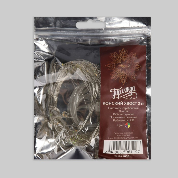 Luazon Lighting Гирлянда с серебристой нитью «Конский хвост»