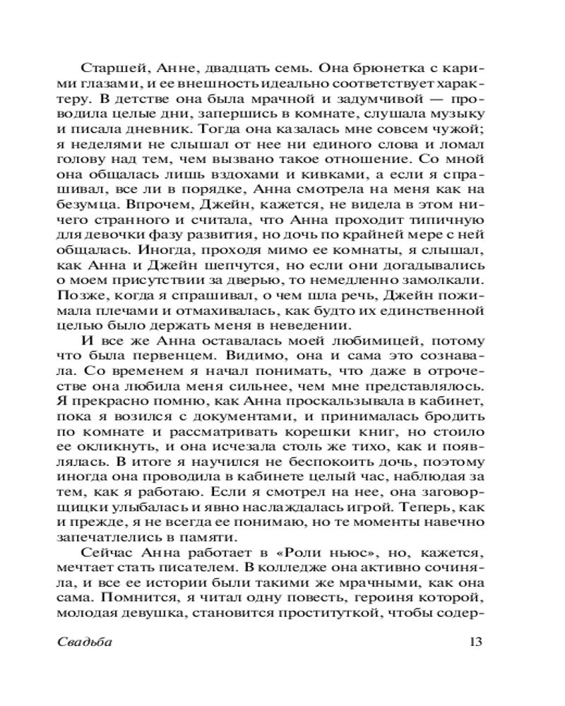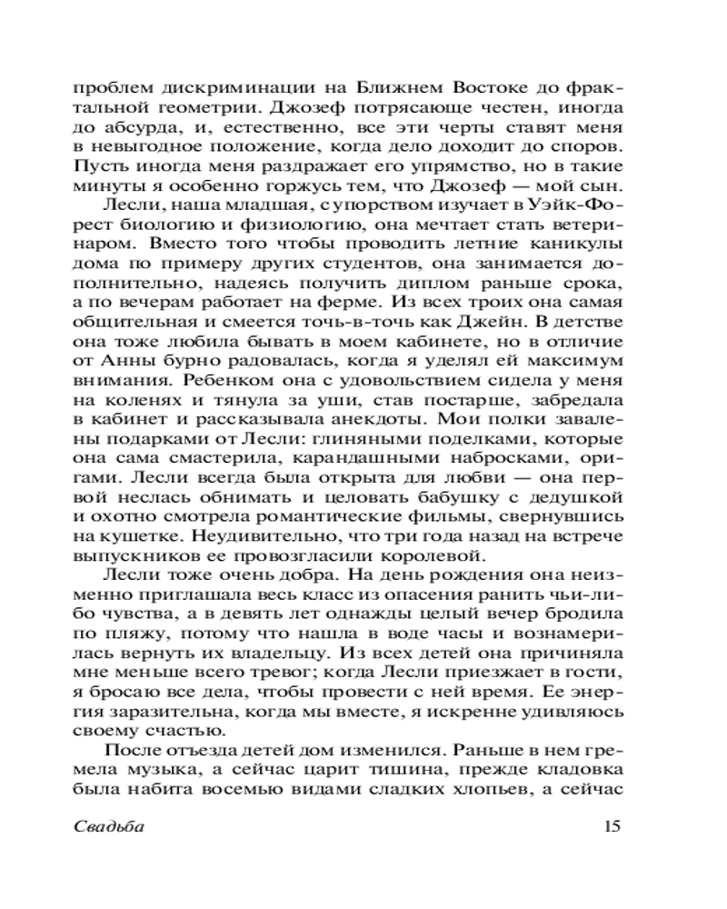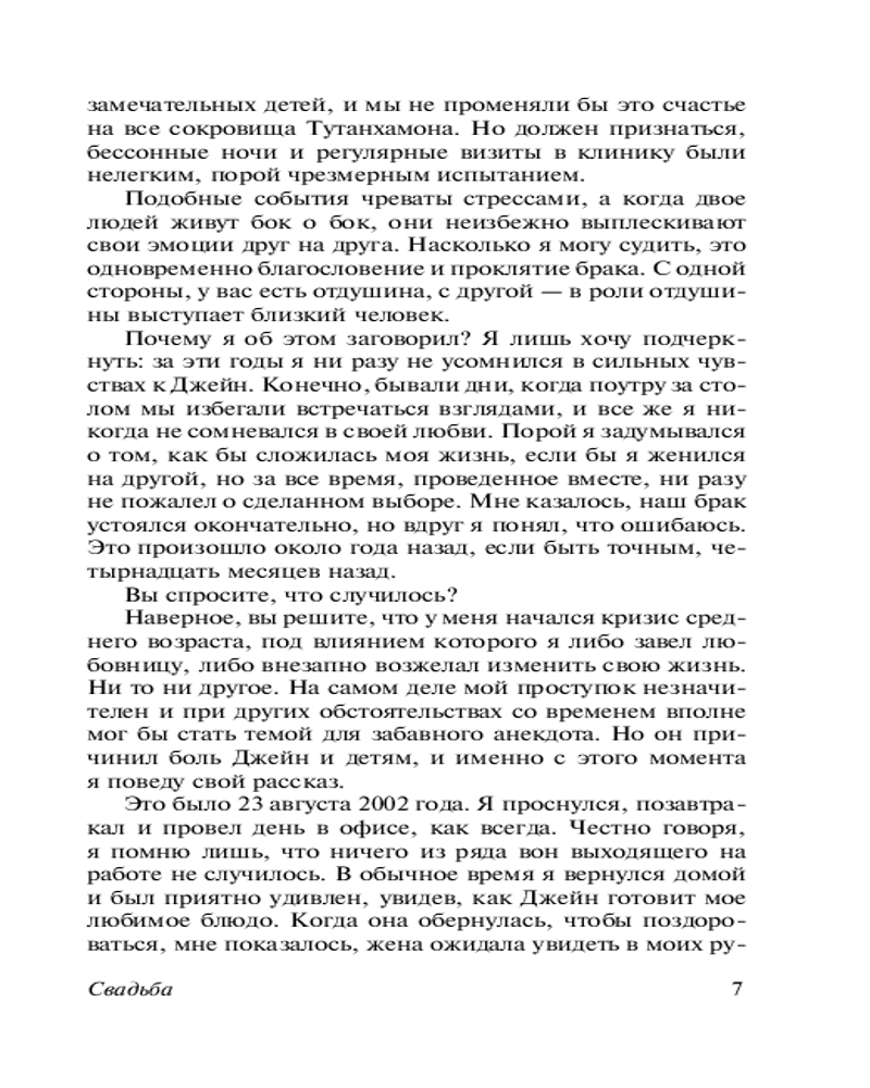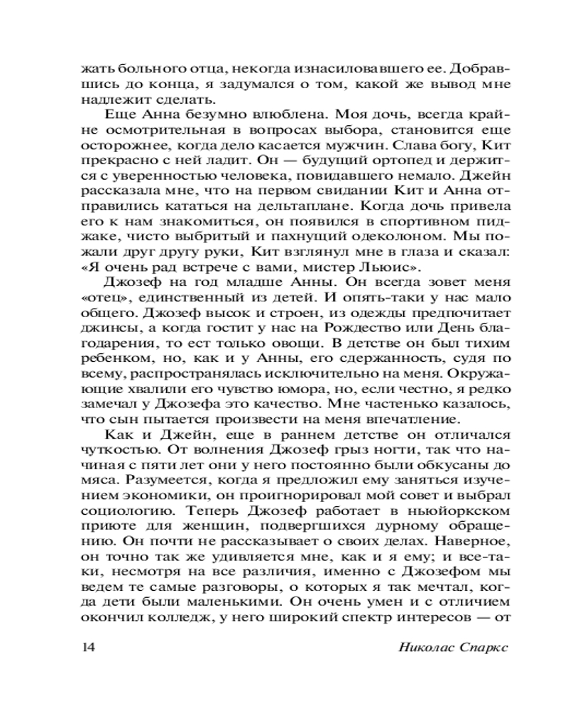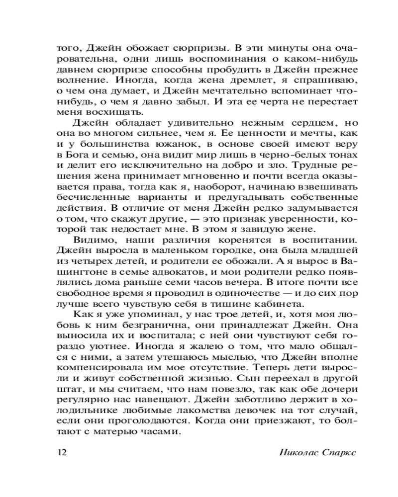 СвадьбаВ данный момент этот товар отсутствует в продаже. Возможно, у нас найдется аналогичный или похожий товар здесь. Серия: Спаркс: чудо любви (м) Продолжение легендарного романа Николаса Спаркса «Дневник памяти», которое ничуть не уступает первой книге! Любовь в браке медленно умирает, сменяясь привычкой? Так бывает, увы, очень часто. Но разве это нельзя изменить?! Уилсон Льюис вынужден признать — его супруга Джейн больше не чувствует себя счастливой. |
