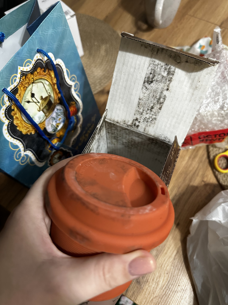 Кончено понимаю что кружку надо помыть перед пользование, но не оттирать же Отвратительно вся коробка грязная и все от нее грязное