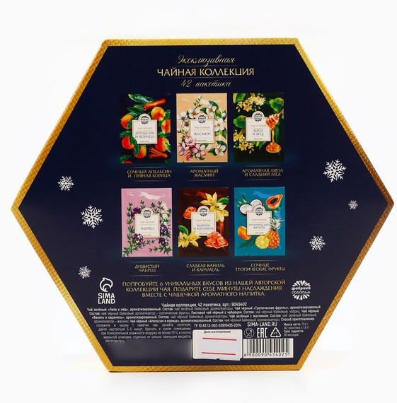 Красивая коробка, внутри ароматные чаи. Хватает надолго, подходит как для подарка, так и себе на праздники.