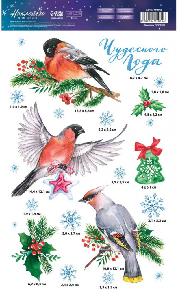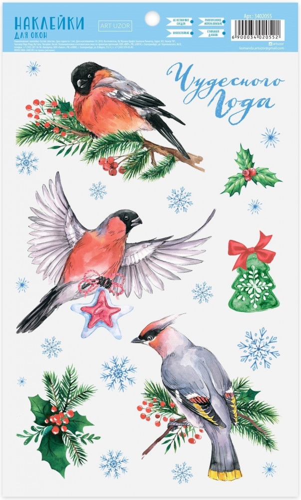 Арт Узор Набор наклеек для окон «Снегири»В данный момент этот товар отсутствует в продаже. Возможно, у нас найдется аналогичный или похожий товар здесь. Серия: Design Новогодние наклейки помогут украсить окна к предстоящим праздникам. Наклейки не оставляют следов, многоразовые, влагостойкие. Изображения крепятся к гладкой поверхности стекла посредством статического эффекта. С помощью этих украшений вы сможете оживить интерьер по своему вкусу. Новогодние украшения всегда несут в себе волшебство и красоту праздника. Создайте атмосферу тепла, веселья и радости. |