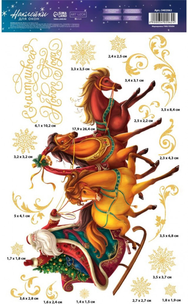 Арт Узор Набор наклеек для окон «Тройка лошадей»В данный момент этот товар отсутствует в продаже. Возможно, у нас найдется аналогичный или похожий товар здесь. Серия: Золотая сказка Новогодние наклейки помогут украсить окна к предстоящим праздникам. Наклейки не оставляют следов, многоразовые, влагостойкие. Изображения крепятся к гладкой поверхности стекла посредством статического эффекта. С помощью этих украшений вы сможете оживить интерьер по своему вкусу. Новогодние украшения всегда несут в себе волшебство и красоту праздника. Создайте атмосферу тепла, веселья и радости. |