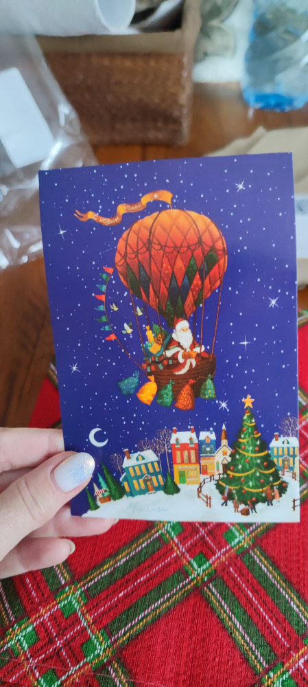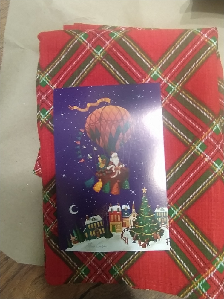 спасибо за открытку)))очень праздничный полотенца, скорее всего немного сядут после стирки,но это не критично (48*61 см размер)