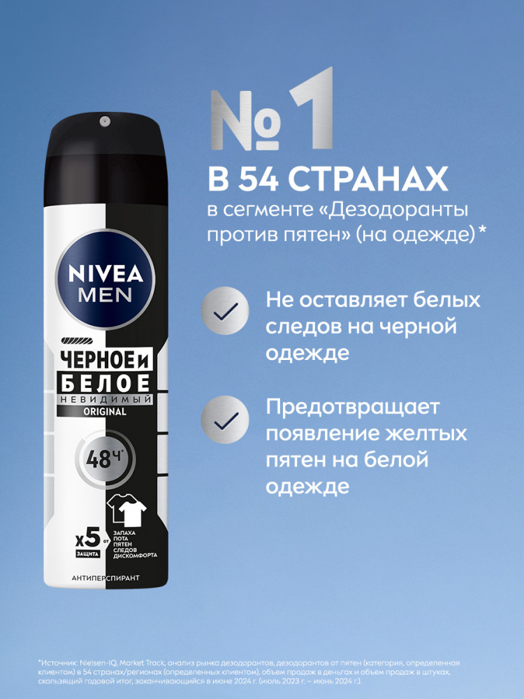 NIVEA Дезодорант-антиперспирант «Черное и белое. Невидимый Original»-20% +51 приятный запах эффективная защита удобен в использовании лёгкий флакон