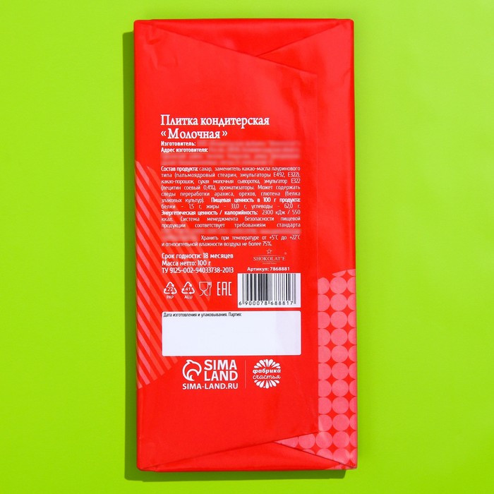 💳 Оплатить за товар можно при получении 🇰🇿 Есть бесплатная доставка по Казахстану от 1 дня 🎁 Копите бонусы с каждой покупки Серия: Вечериночка Вам знакомо то чувство, когда невыносимо хочется чего-нибудь вкусного? В этом нет ничего страшного, баловать себя полезно, ведь сладкое повышает уровень эндорфинов — гормонов счастья. Шоколад принесёт заряд хорошего настроения и станет отличным презентом на Новый год для друзей. Две плитки для двоих. |