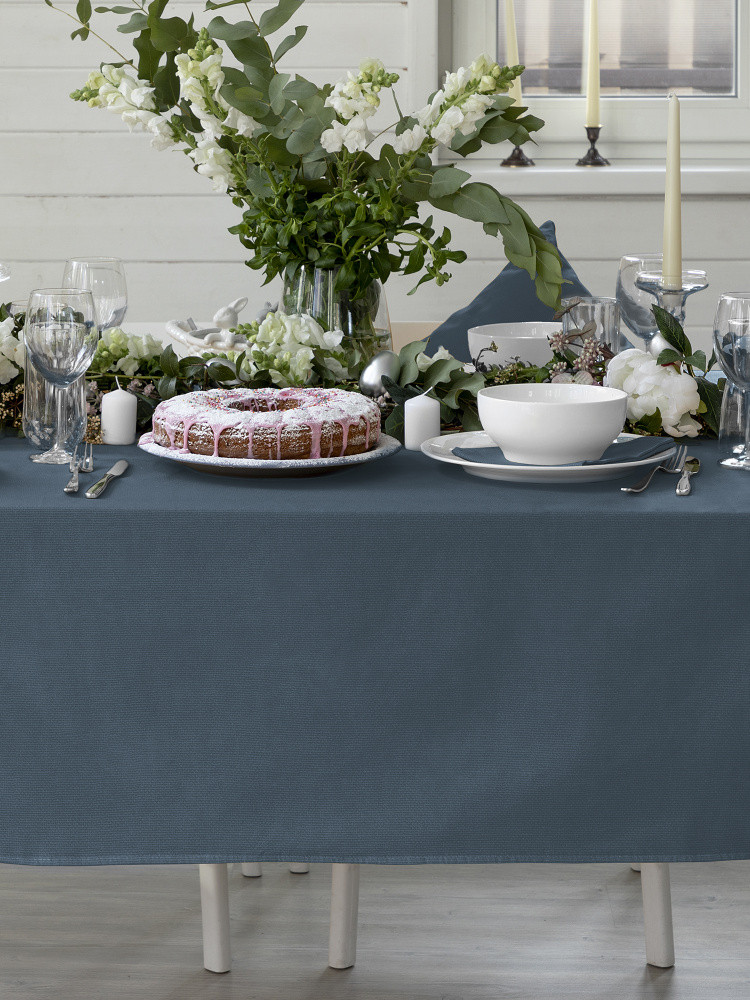 Скатерть из хлопковой рогожки от Унисон. Рогожка — это натуральный материал из 100% хлопка, с приятной фактурой, который при правильном уходе прослужит вам долгое время. Ткань прекрасно защищает поверхность стола, отлично драпируется, поэтому на столе скатерть лежит ровно, а свисающие уголки красиво складываются.