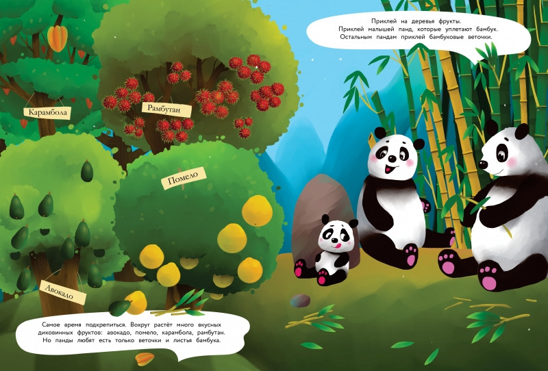 💳 Оплатить за товар можно при получении 🇰🇿 Есть бесплатная доставка по Казахстану 🎁 Копите бонусы с каждой покупки Давай отправимся в путешествие в далёкий Китай и познакомимся с семейством удивительно милых и красивых панд. А заодно узнаем, какие ещё удивительные животные там живут и какие растут экзотические фрукты. С нашими наклейками будет очень интересно, ведь они многоразовые! Можно придумывать свои истории и приклеивать их снова и снова. |