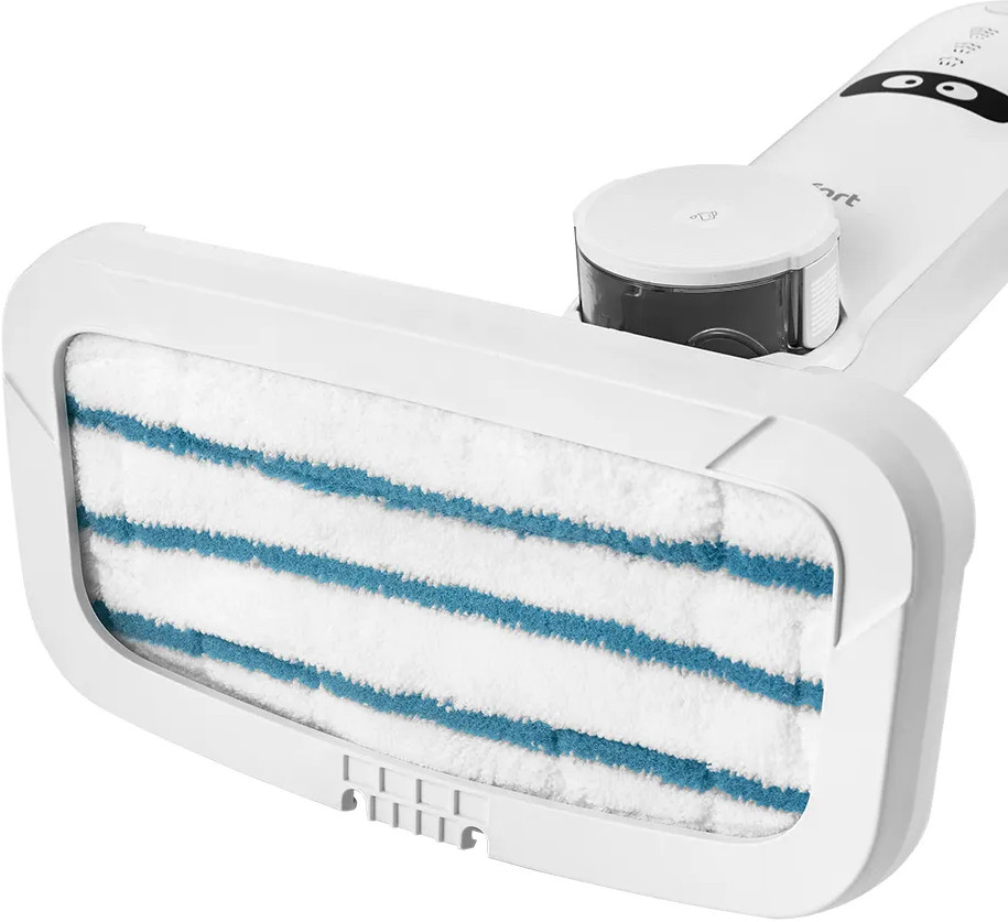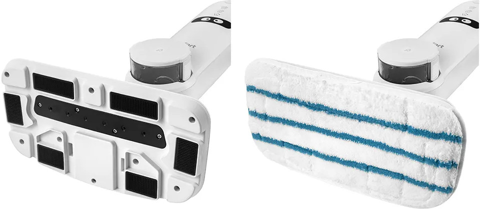 Пар проникает внутрь загрязнения, размягчая и растворяя его, а затем с помощью тряпки большой площади частички грязи смываются. Тряпка надёжно крепится на липучках. Её можно стирать в стиральной машине при 60 °С.
