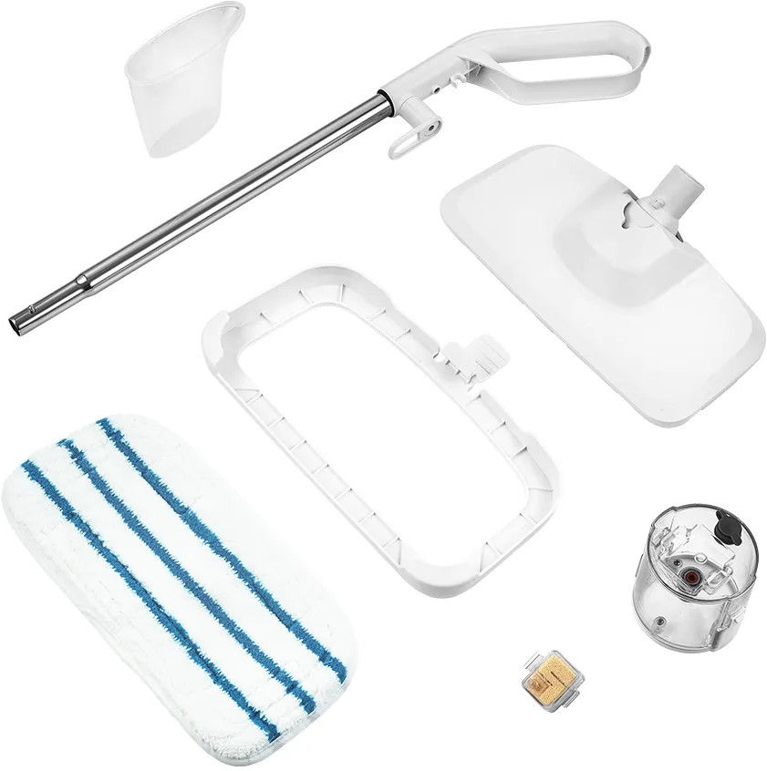 Резервуар у паровой швабры съёмный. В нём предусмотрен фильтр для очистки воды во избежание образования накипи в бойлере и разводов на полу.