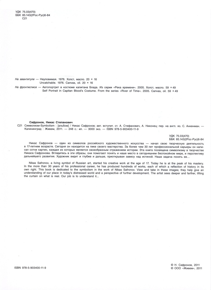 Символизм. Альбом (на русском и английском языках)В данный момент этот товар отсутствует в продаже. Возможно, у нас найдется аналогичный или похожий товар здесь. Никас Сафронов — один из символов российского художественного искусства — начал свою творческую деятельность в |