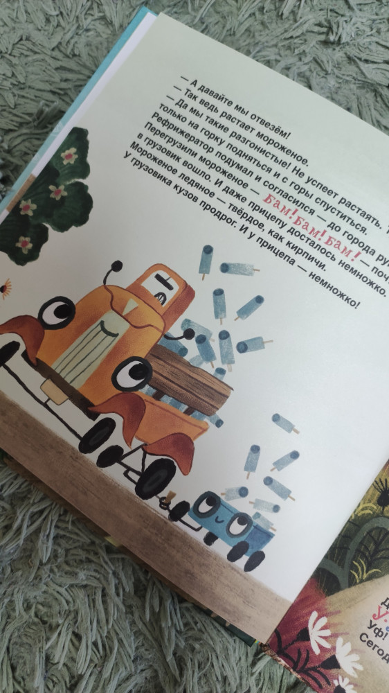 Интересная история - моим мальчишкам понравилась очень. У нас есть все предыдущие истории о грузовике и прицепе, поэтому были рады продолжению)) Книга хорошего качества, листы плотные, красочная.