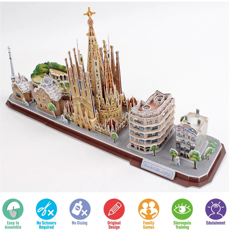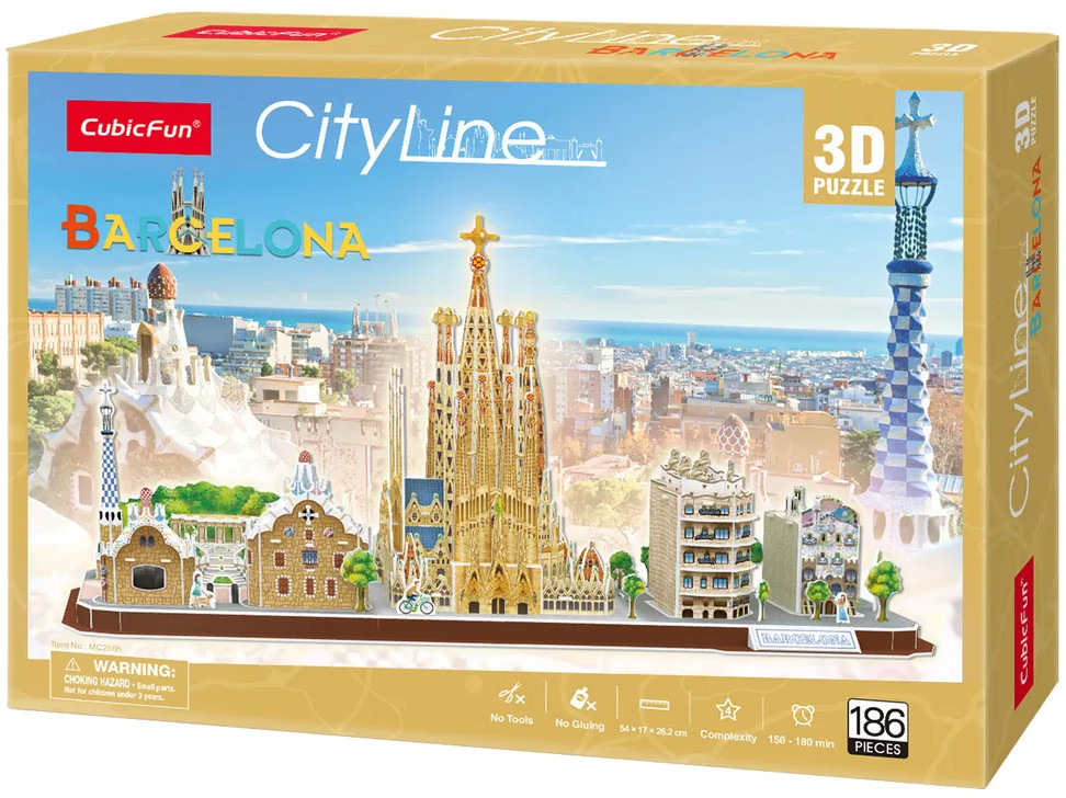 3D-пазлы от лидирующей инновационной компании CubicFun — высокий уровень детализации, качество самих деталей (детали надежно крепятся между собой без дополнительной фиксации, создавая единую конструкцию), стильный дизайн, а также информационная и образовательная составляющая. Увлекательный 3D-пазл панорамы Барселоны из серии «CityLine» c уровнем сложности 4 из 4. Набор содержит 186 объемных деталей.