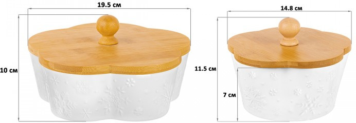 💳 Оплатить за товар можно при получении 🇰🇿 Есть бесплатная доставка по Казахстану от 1 дня 🎁 Копите бонусы с каждой покупки Серия: Снежинки Банки в форме цветка серии «Снежинки» подойдут для хранения и подачи печенья, конфет и других сладостей. Банка выполнена из высококачественного фарфора и украшена рельефными снежинками, а крышка из натурального бамбука. Такая банка привнесет атмосферу зимнего волшебства с хлопьями снега, морозными узорами и танцующими кружевными льдинками. |