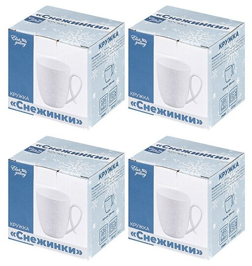 Кружка из 4-х кружек поможет провести множество приятных завтраков с любимым кофе или уютных вечерних чаепитий. Кружка выполнена из высококачественного фарфора и украшена рельефными снежинками. Она привнесет атмосферу зимнего волшебства с хлопьями снега, морозными узорами и танцующими кружевными льдинками.