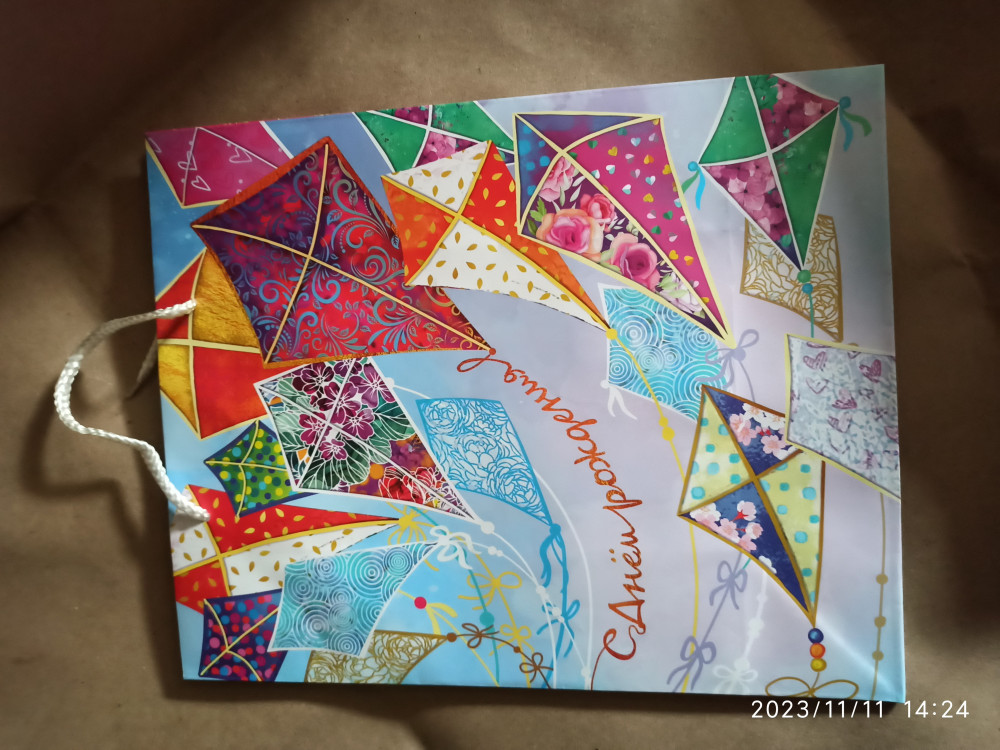 Очень хороший яркий пакет , то что нужно для дня рождени