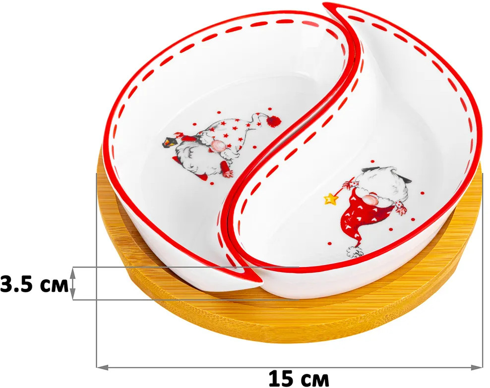 💳 Оплатить за товар можно при получении 🇰🇿 Есть бесплатная доставка по Казахстану от 1 дня 🎁 Копите бонусы с каждой покупки Серия: Веселые гномики Набор серии «Веселые гномики» состоит из 2-х секционных тарелок. Набор поможет эстетично сервировать стол орешками, оливками, сладостями и другими закусками. Выполнен из высококачественного фарфора и натурального бамбука. Гномы, маленькие новогодние помощники, принесут праздничную атмосферу и подарят каждому хорошее настроение. |
