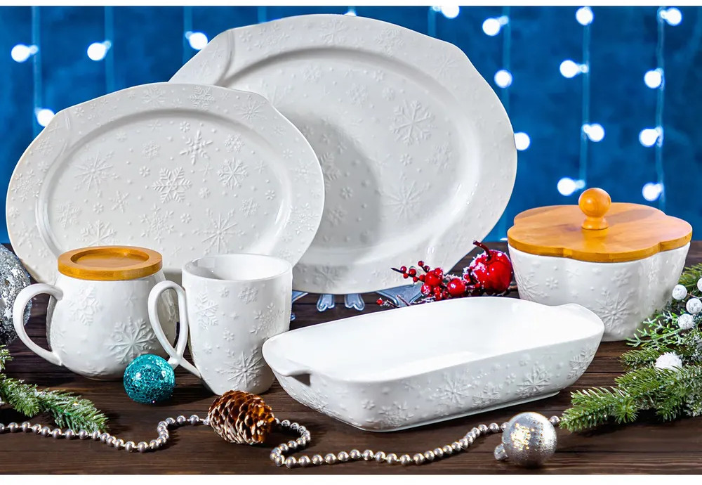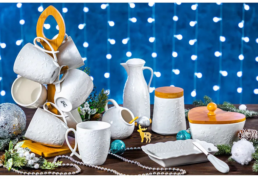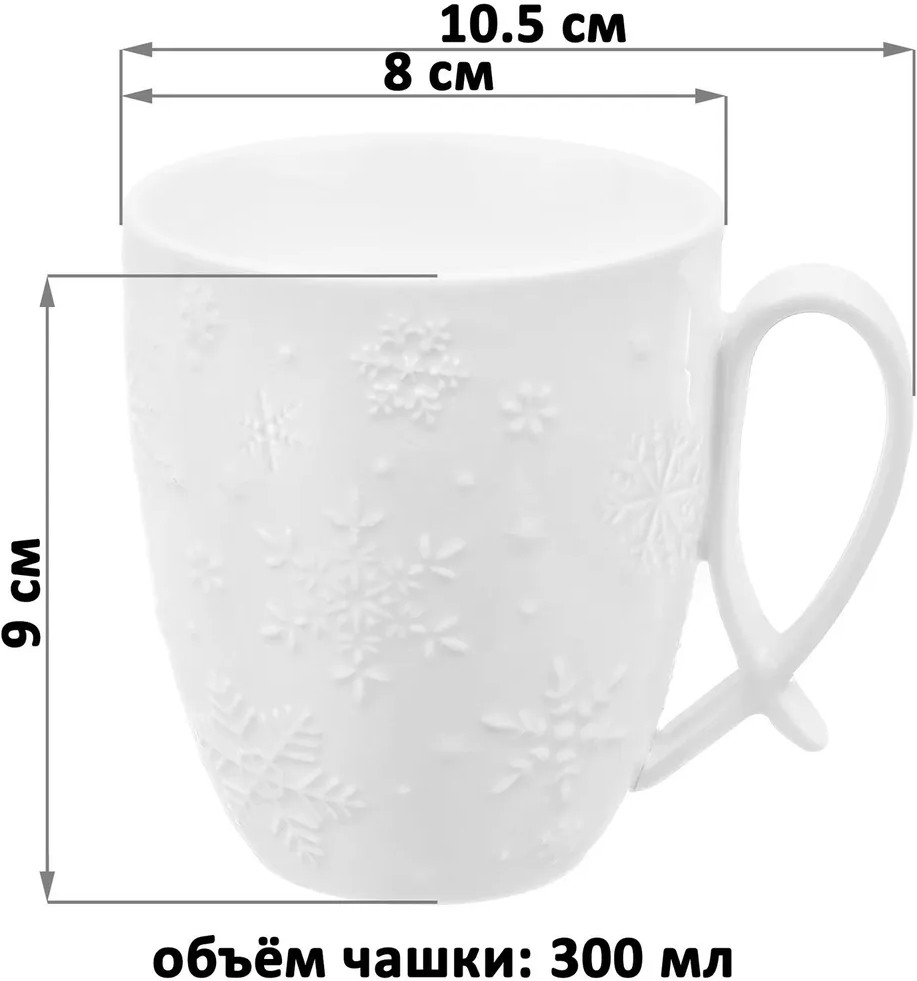 Фарфоровые чашки отличаются от керамических повышенной плотностью. Они не впитывают цвет кофе, чая, глинтвейна, других горячих напитков и не деформируются от влаги, чему может быть подвержена керамика. Посуда поставляется в стильной картонной упаковке. Красивые кружки из серии посуды «Снежинки» смогут стать настоящим украшением кухни у вас дома или приятным подарком для ваших родных и близких!
