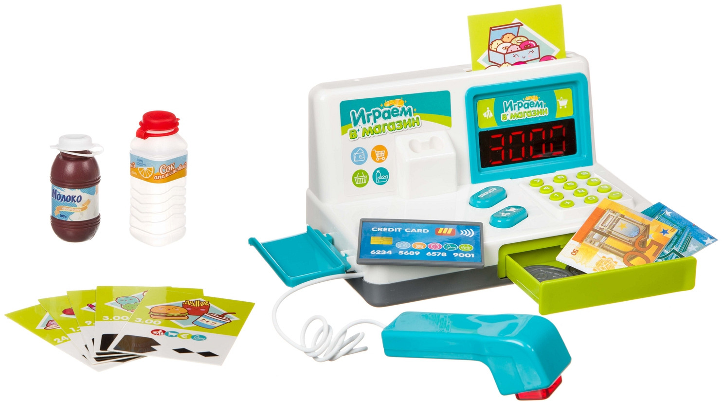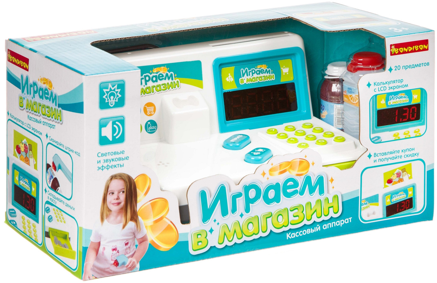 Bondibon Набор игровой «Играем в магазин»В данный момент этот товар отсутствует в продаже. Возможно, у нас найдется аналогичный или похожий товар здесь. «Играем в магазин» — замечательный набор для сюжетно-ролевых игр. В составе набора кассовый аппарат со сканером и аксессуарами. Во время игры можно считывать стоимость продуктов с помощью сканера, рассчитываться за покупки пластиковой картой или деньгами, вставлять купоны в отверстие в кассе и получать скидки. Нажатием кнопки открывается отсек для денег. |