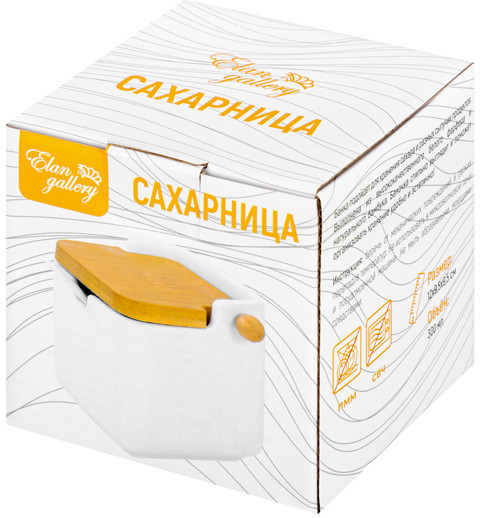 Elan Gallery Сахарница с ложкой «Айсберг»-35% +42 белая керамика крышка под дерево удобная форма стильный дизайн