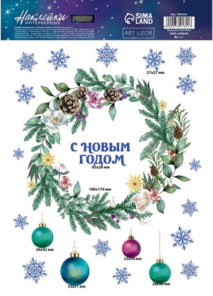 Арт Узор Набор наклеек интерьерных со светящимся слоем «Новогодний венок»-40% +15