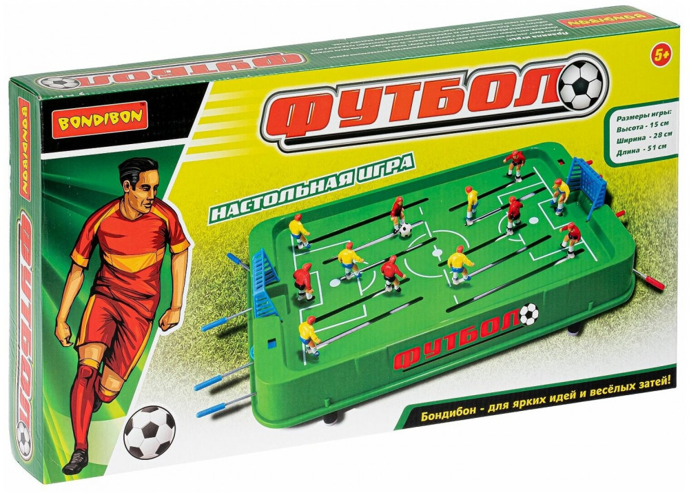 Bondibon Игра настольная «Футбол»В данный момент этот товар отсутствует в продаже. Возможно, у нас найдется аналогичный или похожий товар здесь. Настольная игра Bondibon Настольный футбол — это увлекательнейшее развлечение для всей семьи. Даже если вы не фанаты профессионального футбола, попробовав хоть один раз сыграть в настольный футбол, вы не сможете оторваться. Игра развивает координацию движений, быстроту реакции. В комплект входят две команды футболистов по шесть игроков в каждой. Фигурки управляются при помощи рычажков с рукоятками. Задача каждой из сторон — попытаться забить мяч в ворота противника, управляя фигурками футболистов. Благодаря пластиковым бортикам мяч не будет вылетать за пределы поля. Играя в такой футбол, дети будут развивать стремление и волю к победе, которые так необходимы в настоящем спорте. Размер игрового поля — 43 × 25 см. |