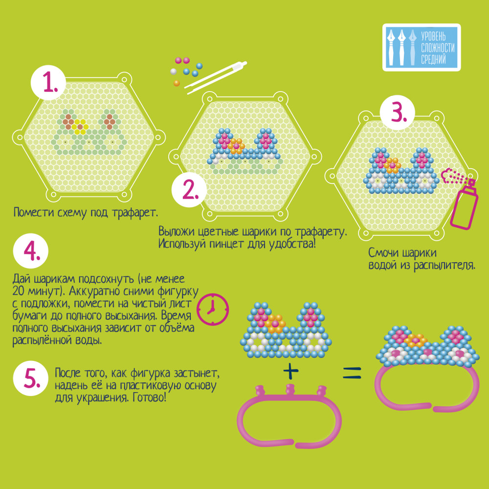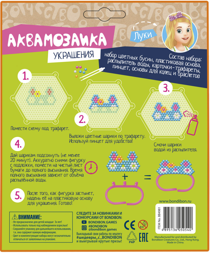 Серия: Творчество с Луки Набор для творчества аквамозаика «Украшения» серии Творчество с Луки Bondibon — это набор для создания браслетов и колечек своими руками. Маленькие рукодельницы могут использовать готовые трафареты или придумать собственный дизайн-шаблон. |