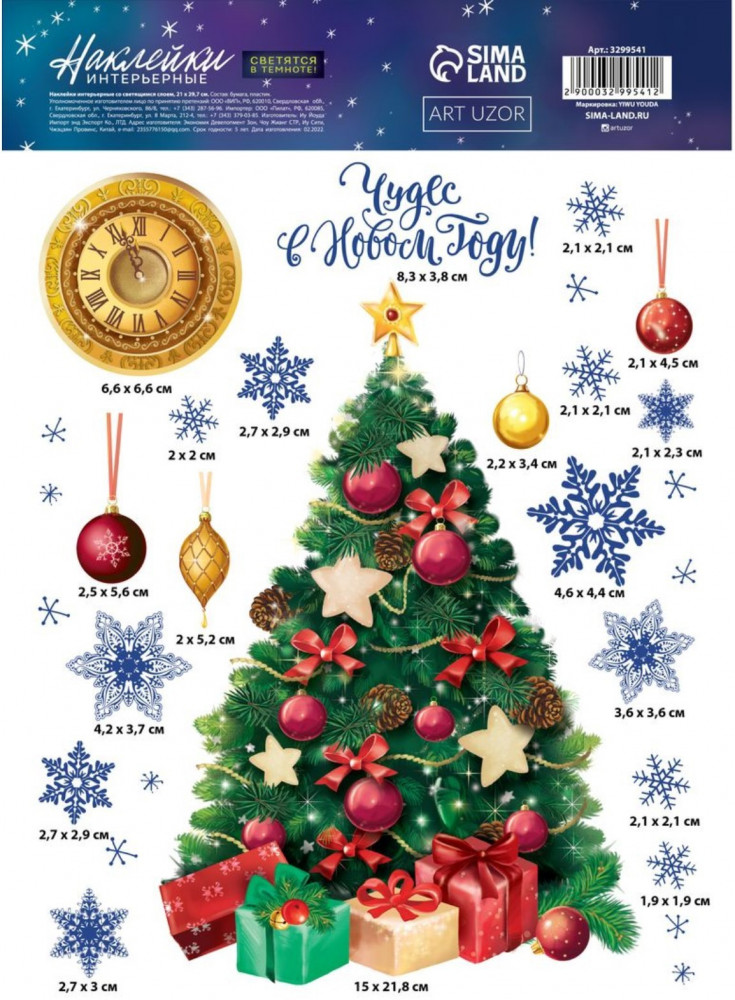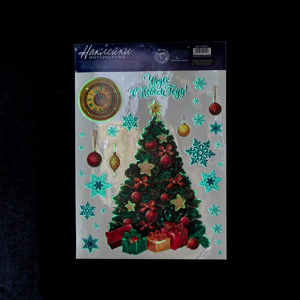 Арт Узор Набор наклеек интерьерных со светящимся слоем «Чудес в новом году!»+23 красивый дизайн праздничный вид для окон хорошее качество слабо светятся маленький размер