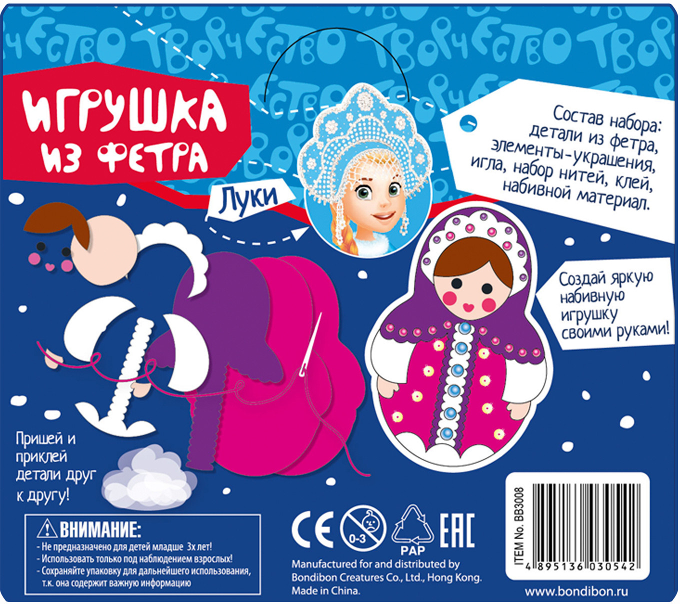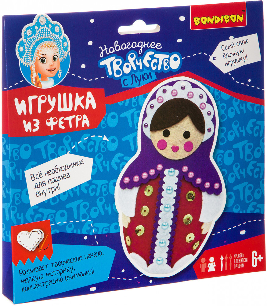 Серия: Новогоднее творчество с Луки С этим набором ты сможешь сшить замечательную игрушку на ёлку из мягкого фетра. Его просто шить вручную, а готовое изделие можно немного растянуть для придания ему необходимой формы. Фетр, из которого мы будем шить игрушки, имеет очень яркие и сочные цвета! Все необходимое для шитья ты сможешь найти в наборе! Создай всех персонажей, придумай им историю и устрой новогоднее театральное представление. |