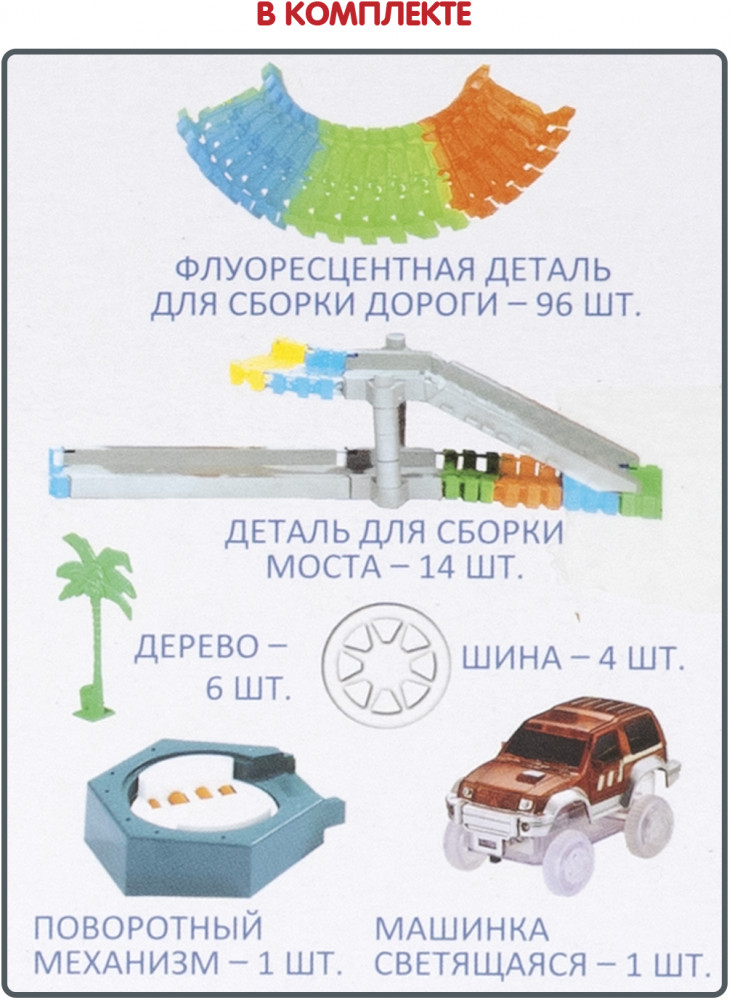 • деталь для сборки дороги флуоресцентная — 96 шт.;