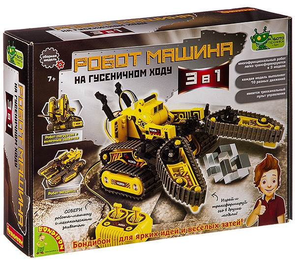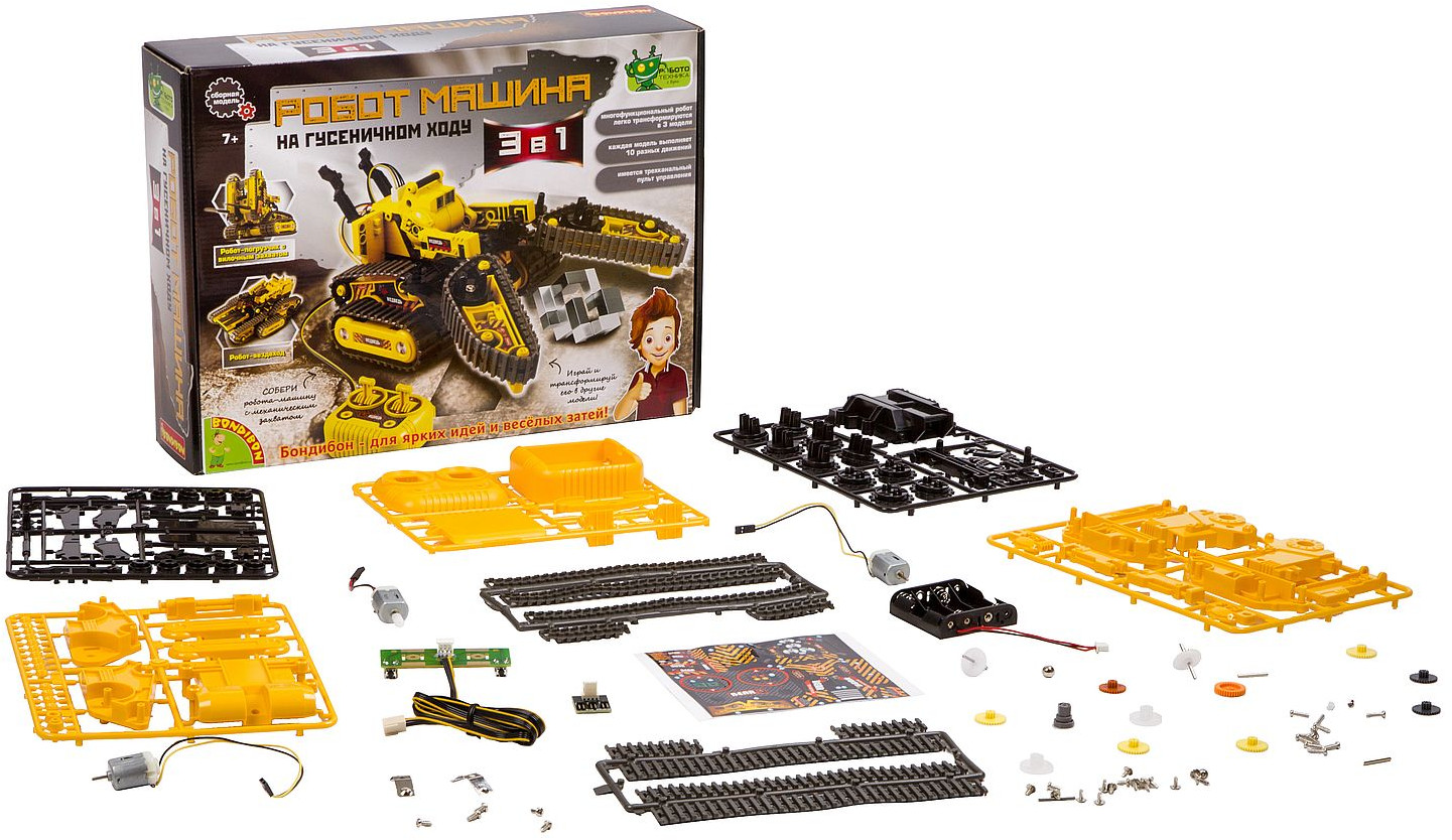 💳 Оплатить за товар можно при получении 🇰🇿 Есть бесплатная доставка по Казахстану от 1 дня 🎁 Копите бонусы с каждой покупки Серия: Науки с Буки. Французские опыты Набор для опытов «Робот-машина 3в1» — это многофункциональный робот на гусеничном ходу. Управляется проводным пультом, что позволяет ему двигаться вперед и назад, поворачивать влево или вправо. Также вездеход ездит по разной местности и рельефу, погрузчик с вилочным захватом поднимает платформу и робот с механическим захватом берет предметы. Собирая робота, дети учатся логически мыслить, работать с инструкциями; получают новые знания в области электроники. Дополнительно понадобится крестовая отвертка, бокорезы. |