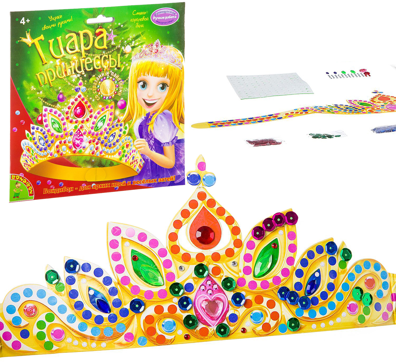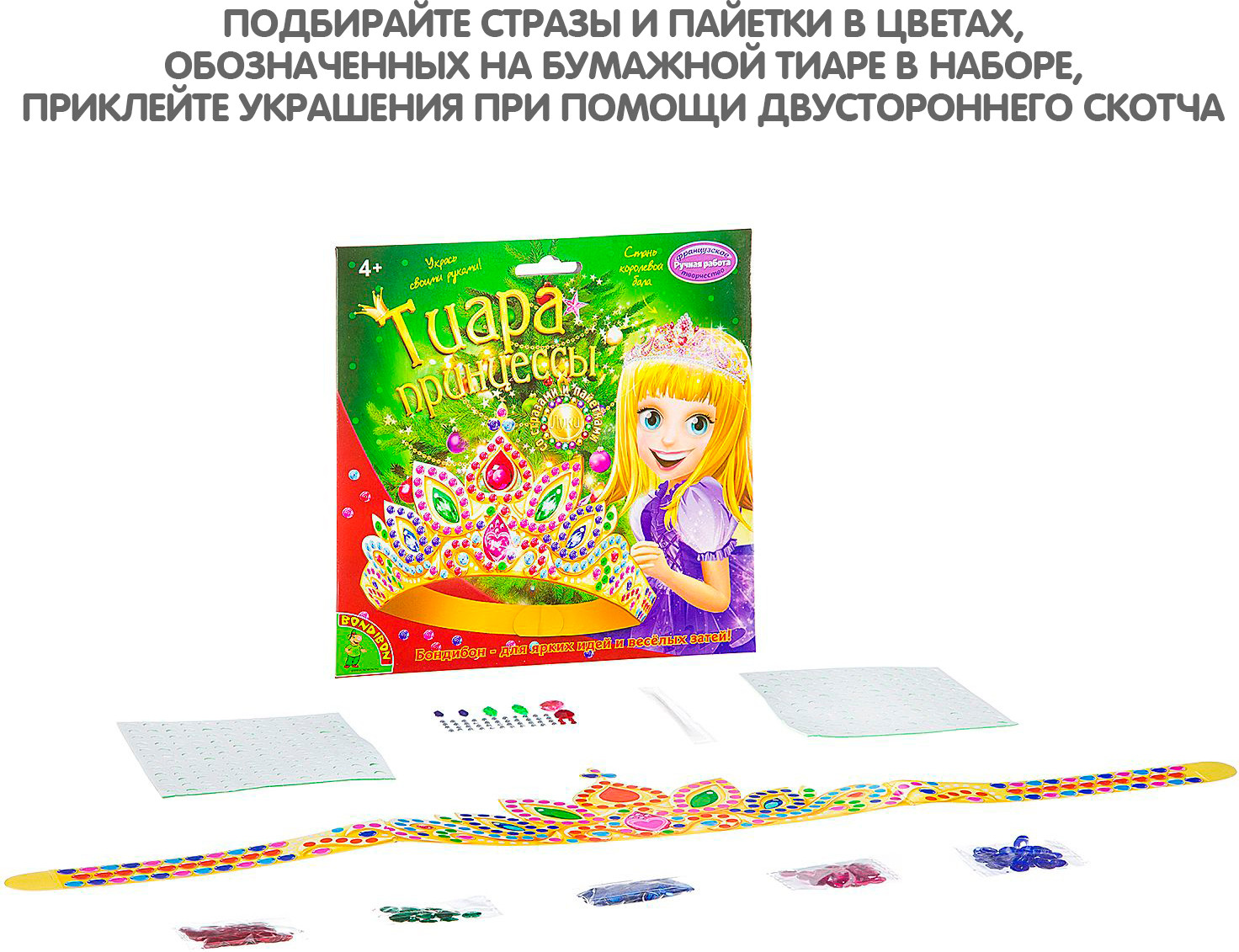 Bondibon Набор для творчества «Новогодняя тиара принцессы с пайетками и стразами»В данный момент этот товар отсутствует в продаже. Возможно, у нас найдется аналогичный или похожий товар здесь. Серия: Ручная работа Аппликация стразами и пайетками тиары из бумаги -увлекательное занятие для ребёнка. Подбирайте стразы и пайетки в цветах, обозначенных на бумажной тиаре в наборе. Приклейте украшения при помощи двустороннего скотча. Аккуратно и чисто! |