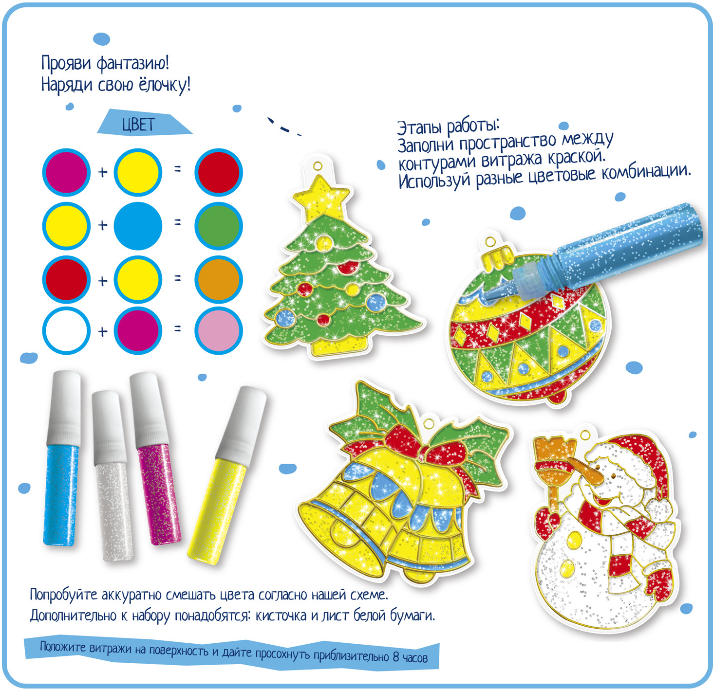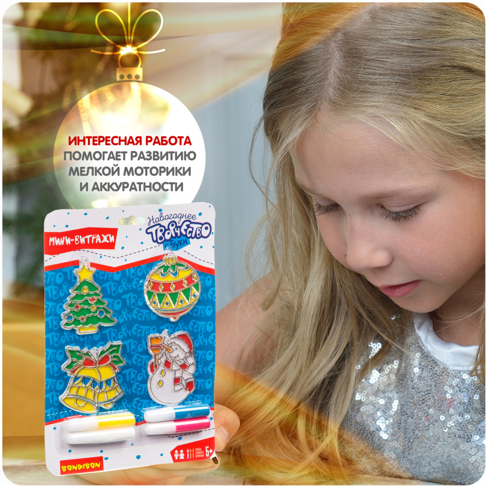 Bondibon Набор для творчества «Новогодние украшения. Витраж»кисточки белого листа В данный момент этот товар отсутствует в продаже. Возможно, у нас найдется аналогичный или похожий товар здесь. Серия: Новогоднее творчество с Буки Витраж — это очень красивый вид искусства, который способен украсить собой любой интерьер. Изучить основы витражного искусства может даже ребенок, начиная с 5 лет. Готовые украшения в витражном стиле можно разместить на елке, окне, других предметах интерьера или порадовать близких рукодельным подарком. Bondibon — для ярких идей и веселых затей! |