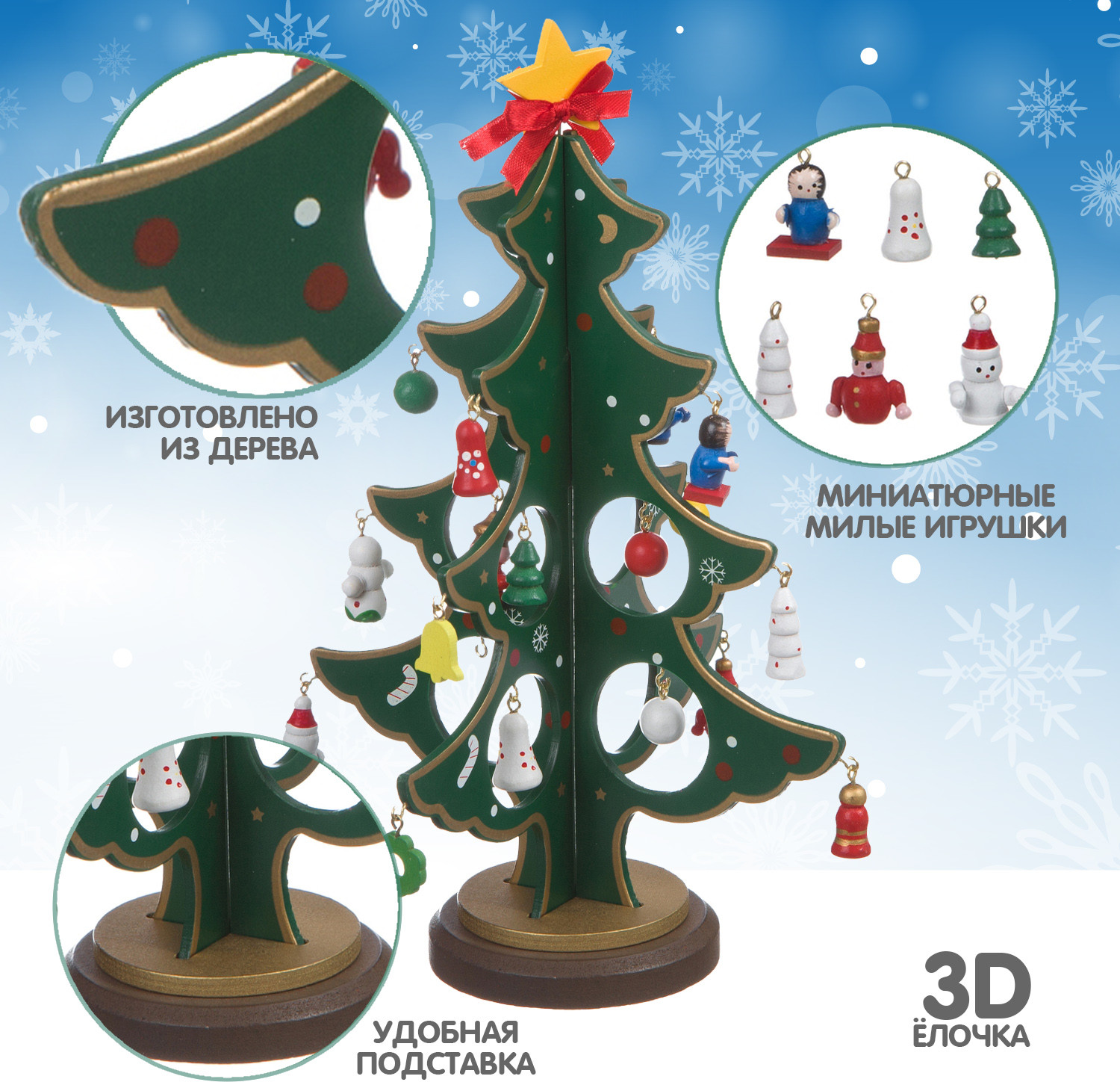 Отзывы «Набор для творчества «Деревянная ёлочка 3D с игрушками»»