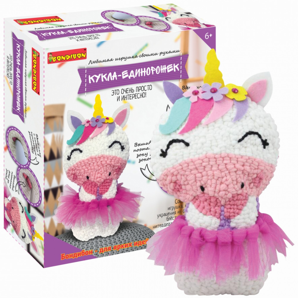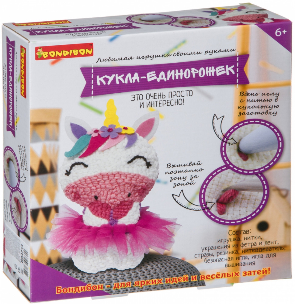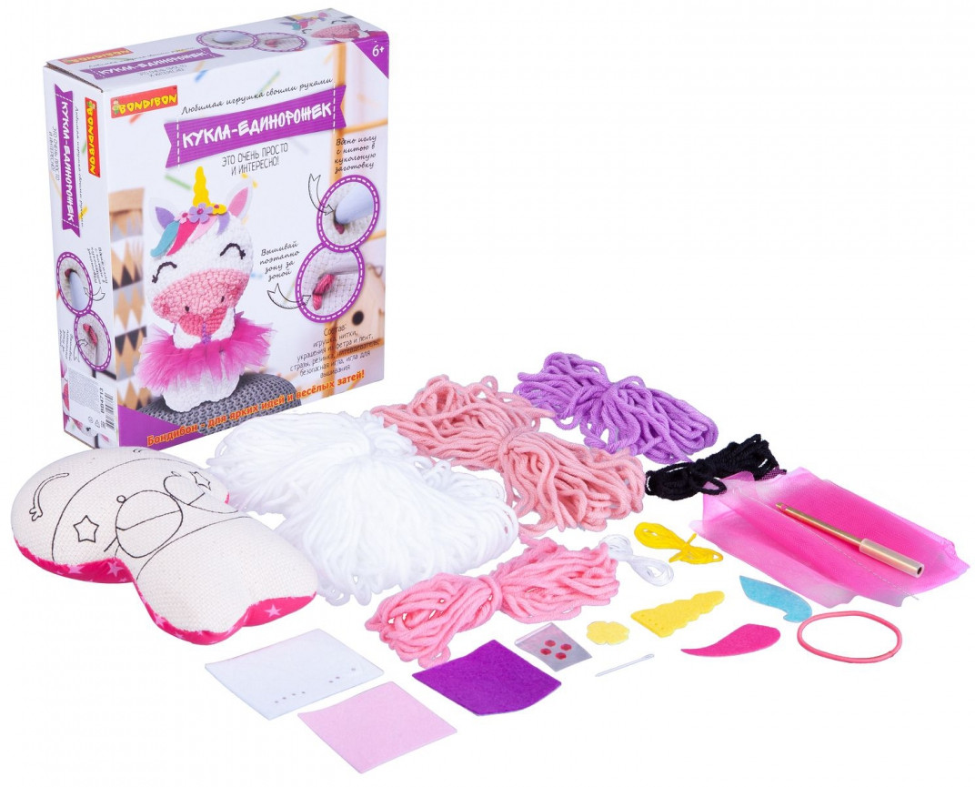 Набор от Bondibon «Любимая игрушка своими руками» вдохновит каждую девочку на рукоделие и творчество, ведь шить — просто! Всё, что необходимо для создания единорожки, это воспользоваться нитями и безопасной иглой из набора, и следовать инструкции! Игрушка, сделанная своими руками, всегда будет особенной.