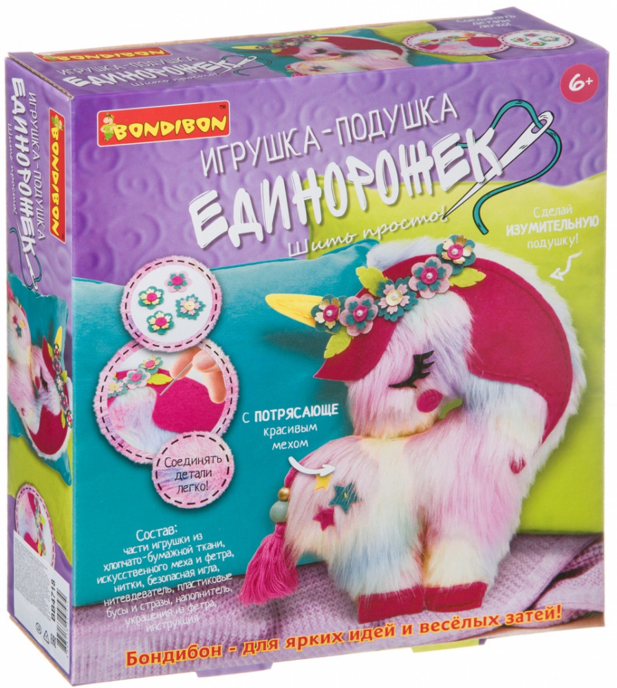 Серия: Шить - просто! Набор от Bondibon вдохновит каждую девочку на рукоделие и творчество, ведь шить — просто! В наборе «Шить просто!» есть всё для создания милой подушечки в виде единорога. |