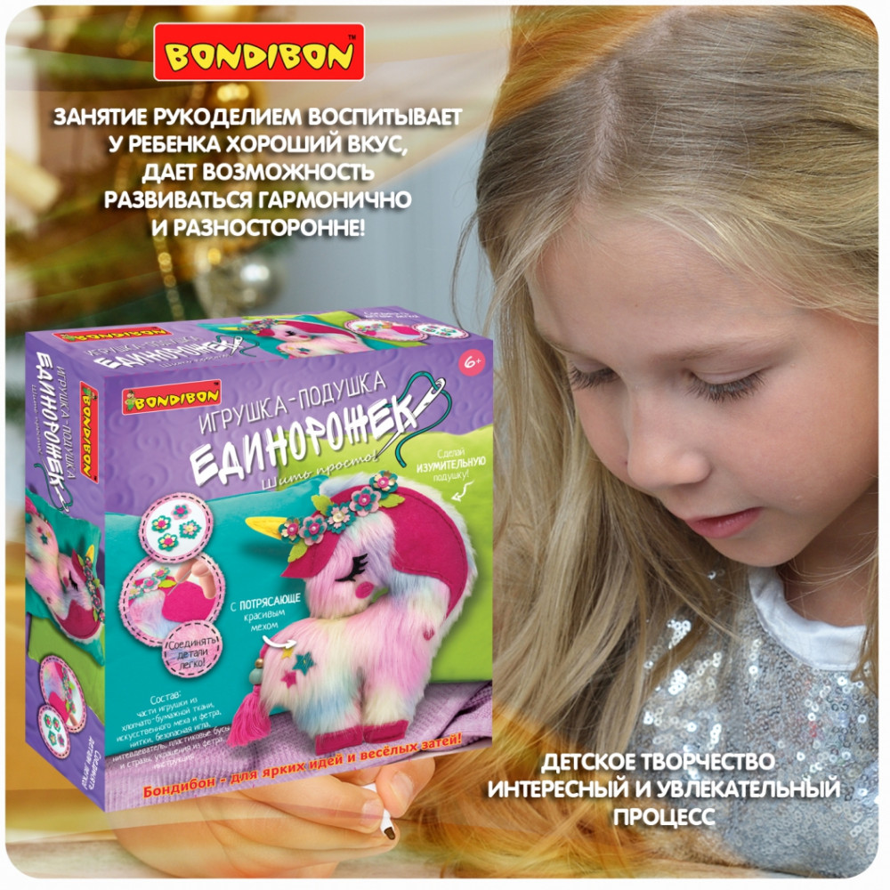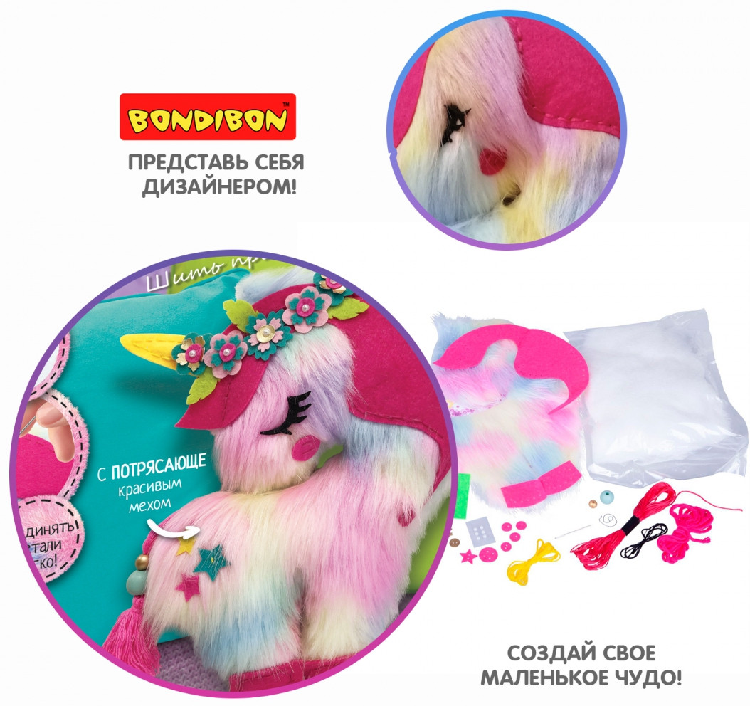 Bondibon Набор для шитья «Шить просто. Игрушка-подушка единорожек»-30%